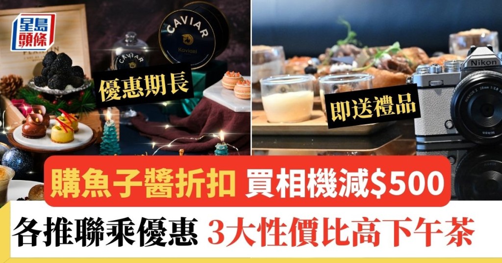 不少聯乘主題的下午茶,都有着數優惠,好像今日推介的2大酒店下午茶,分別聯乘相機品牌及魚子醬、松露食材品牌,均為客人送上購物優惠,令美味下午茶的性價比更高。