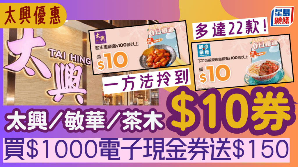 太興優惠|App會員即獲22款優惠券+買$1000電子現金券送$150+推薦親友獎賞