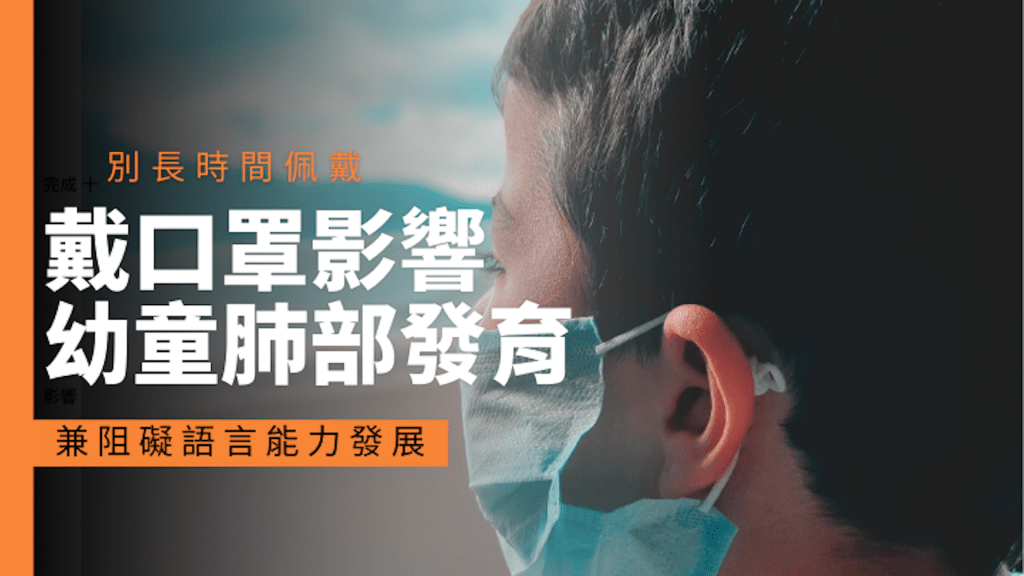 原來三至五歳是兒童肺部發育的黃金時期,孩童在此階段,要等肺泡的生長達至跟成人差不多的水平,肺部才算發育完成。在此之前,小朋友的肺功能並不算好,氣體交換量仍未充足,所以若在長時間佩戴口罩,會對小朋友肺泡發育造成影響。另一方面,因學齡前兒童須靠留意口型來學習語言,戴上口罩的話,會影響到認知的功能,繼而也可能影響兒童的語言能力。