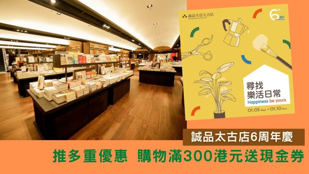 誠品6周年慶|太古店推多重優惠 購物滿300港元送現金券