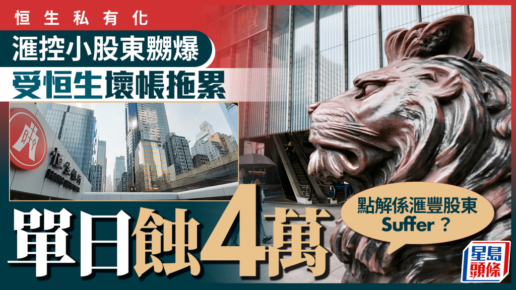 相關新聞:恒生私有化|滙控小股東嬲爆 受恒生壞帳拖累 單日蝕4萬 「點解係滙豐股東Suffer?」