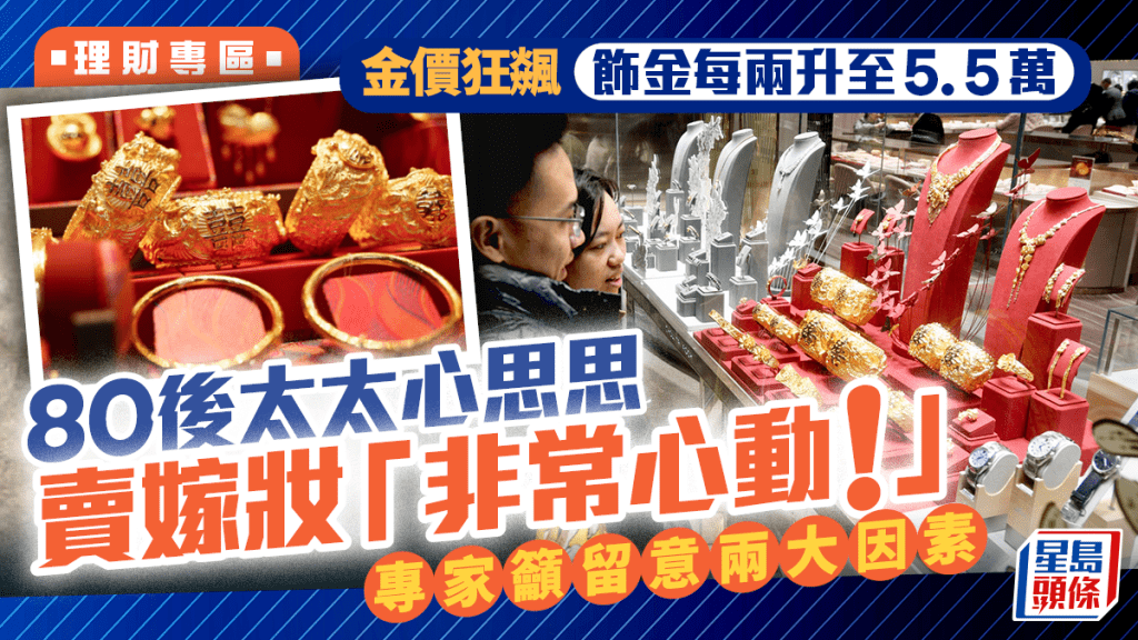相關文章:金價狂飊 飾金每兩升至5.5萬 80後太太心思思賣嫁妝「非常心動!」 專家籲留意兩大因素