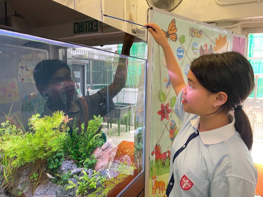 去年,我們在校園設立「寵愛閣」。這個溫馨的小角落住了淡水魚、小烏龜和倉鼠。七位來自四至六年級的學生組成護理小組,每天輪流觀察、記錄和照顧這些小生命。