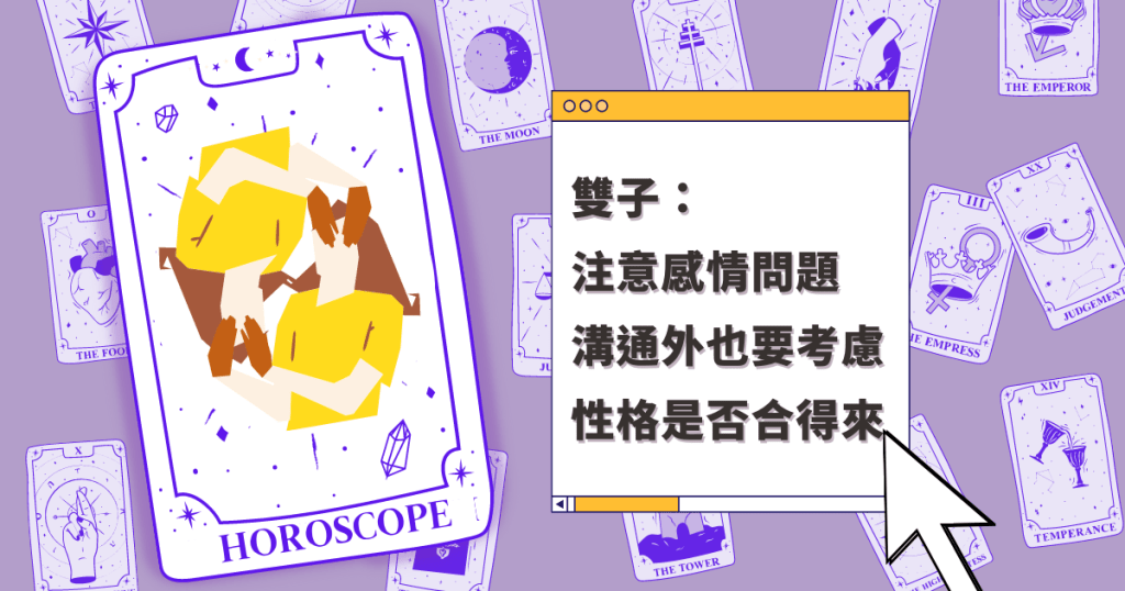 雙子:注意感情問題,除溝通外,更要考慮性格是否合得來。