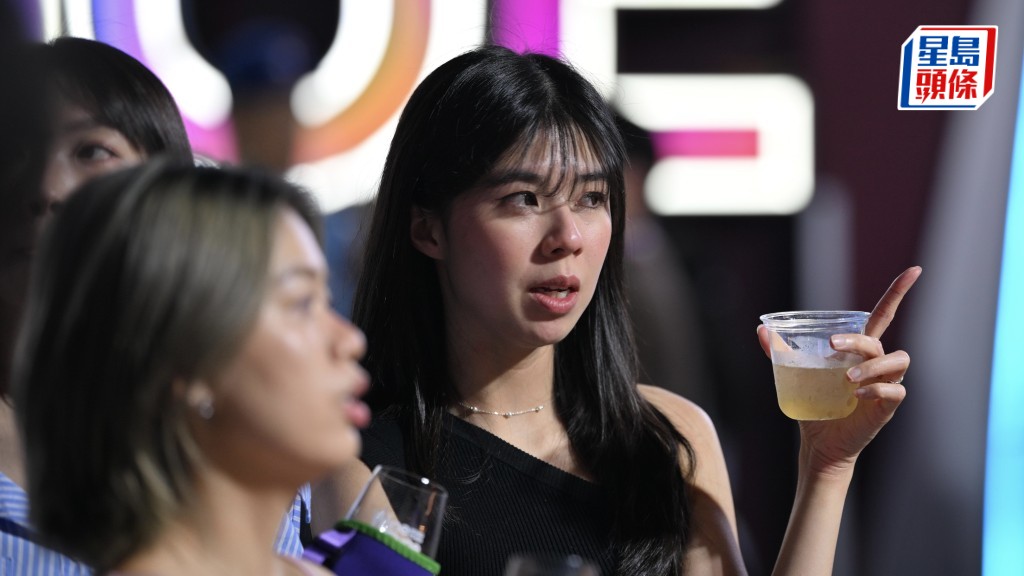 在港讀書的內地生Nina是首次參加美酒佳餚巡禮,計劃「飲5個Token起步」,亦品嚐了清酒、氣泡酒及小食拼盤。她認為場內美酒種類非常多,笑稱「抵飲又抵買」,又指自己是特意傍晚入場,「想着沒那麼多人,也能早點開始飲」。