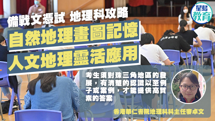 香港華仁書院地理科科主任麥卓文表示,現時距離開考只有四天,同學在最後階段,應操練舊試題為主,但當中應主力做選擇題和資料題,「核對選擇題的答案時,可了解一下自己哪些課題還須練習,並針對性地溫習;做資料題時,同學應比對評卷參考(marking scheme),了解答題時有否使用地理用語和重點字眼,以提升答題的準確度。」