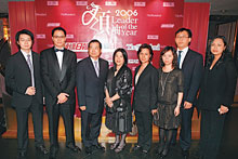 昨晚他從上屆金融界的得獎者東亞銀行主席兼行政總裁李國寶手中接過獎盃,兩人原來份屬世交。他表示,從上屆領袖李國寶身上,學會了不少做人處世的道理。「我記得以前每一次東亞銀行開董事會,李先生很守時,永遠是最早到的一個,這令我有好深刻的印象。」 |