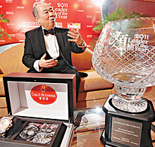 Superstar Andy Lau Tak-wah and other prominent figures in entertainment, education, community development and business were honored for their outstanding achievements at the 18th Leader of the Year awards ceremony on March 19, 2012.