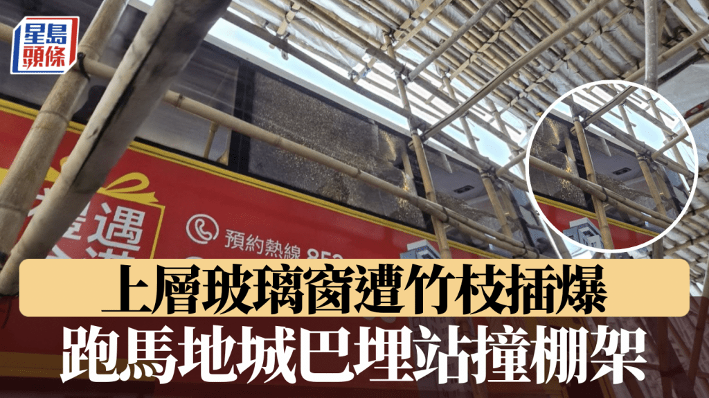 跑馬地城巴撞棚架 竹枝插爆上層玻璃窗