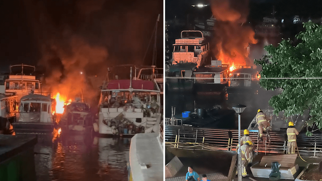 有片|西貢遊艇陷火海 濃煙衝上半空 消防岸邊射水撲救