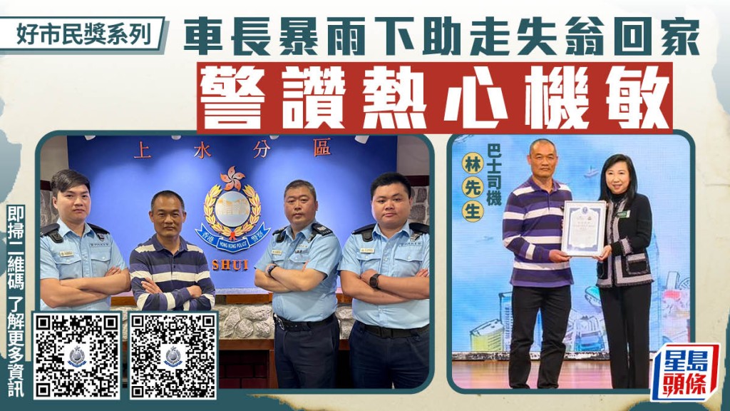 好市民獎|車長暴雨下助走失翁回家 警讚熱心機敏