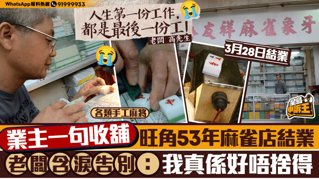 星島申訴王|業主一句收舖 旺角53年麻雀店結業 老闆不捨:全港手工麻雀店又少一間