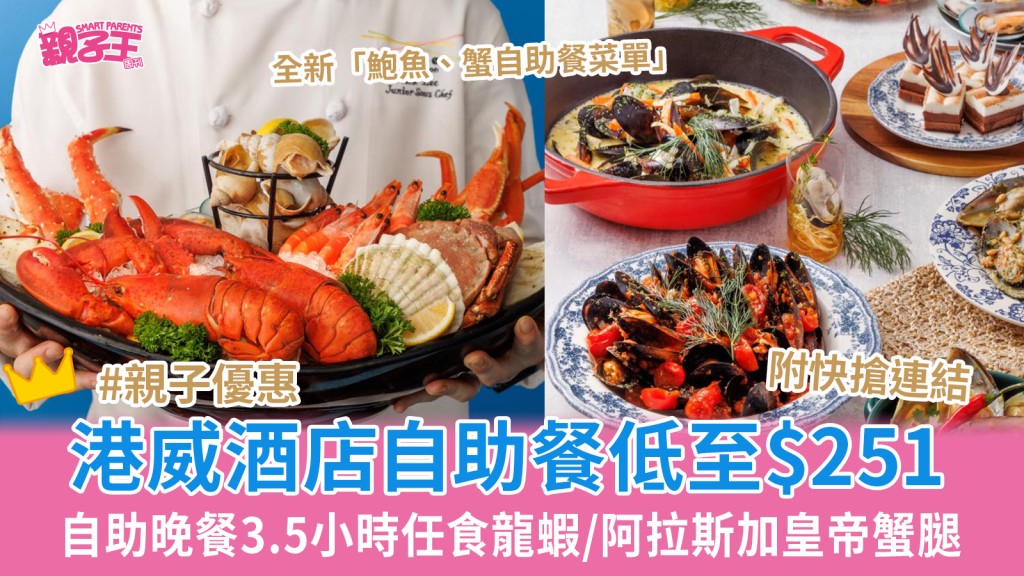港威酒店自助餐買一送一低至$251歎雪蟹腿 3.5小時任食全新蟹主題自助晚餐必試阿拉斯加蟹腳|親子優惠