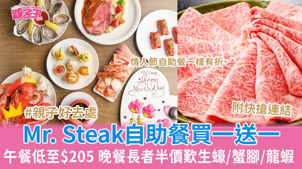 銅鑼灣Mr. Steak自助餐快閃買一送一 自助餐無限量生蠔/蟹腳低至$280長者半價︳親子優惠