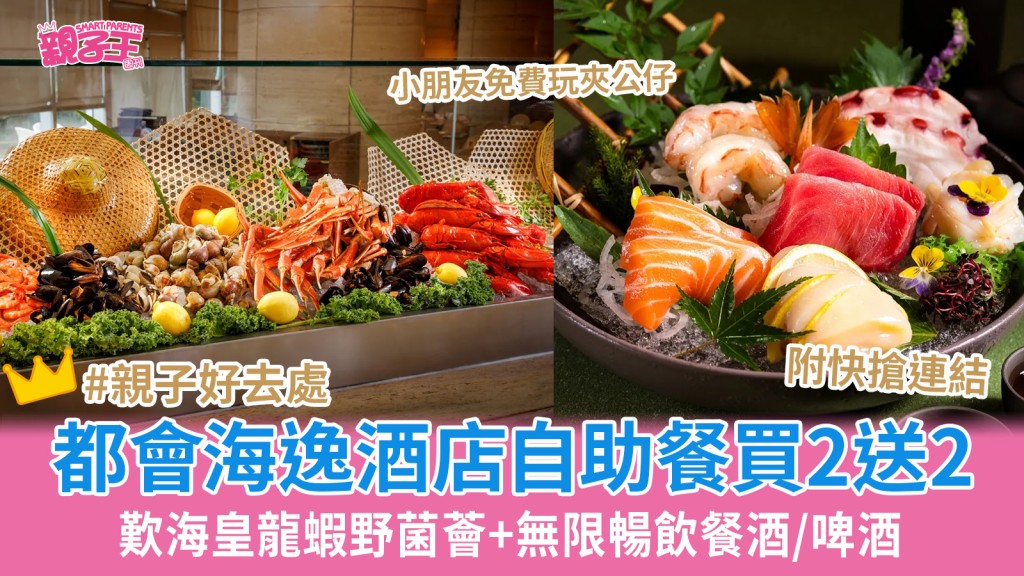 都會海逸酒店自助餐買二送二 歎海皇龍蝦野菌薈+無限暢飲餐酒/啤酒 小朋友玩夾公仔|親子優惠