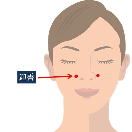 位置: 鼻翼外緣中點旁,鼻唇溝中(食指與中指並攏,中 指緊貼鼻翼,食指指尖處即是)。