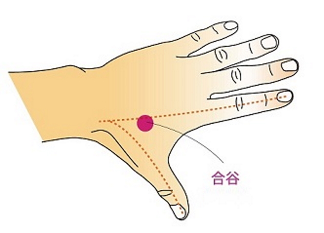 位置: 位於手背,第一、二掌骨間,第二掌骨橈側的中點處(拇指與食指並攏,虎口上突起的小肉丘即是)。