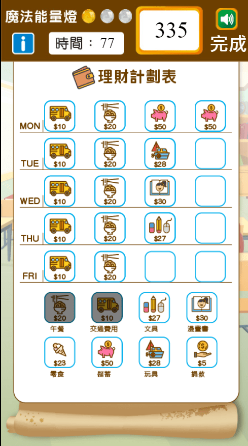 為增加小學生的學習興趣,理財電子書不但運用鮮明色彩及活潑圖畫,小朋友亦可選擇化身成各個角色,代入不同情景,從中明白角色們的需要,學會避免衝動消費。故事內更設有小遊戲,跟大家平日所接觸的遊戲模式相似,以提升投入感。至於家長則不用擔心孩子沉迷遊戲,因每個角色扮演只需十五分鐘,其後會有問卷,可以即時檢討小朋友領略理財概念的狀況,並提供相關的理財攻略,讓父母透過電子書的內容及遊戲,與子女討論各種情境下如何使用金錢,開啟日常的「Money Talk」。