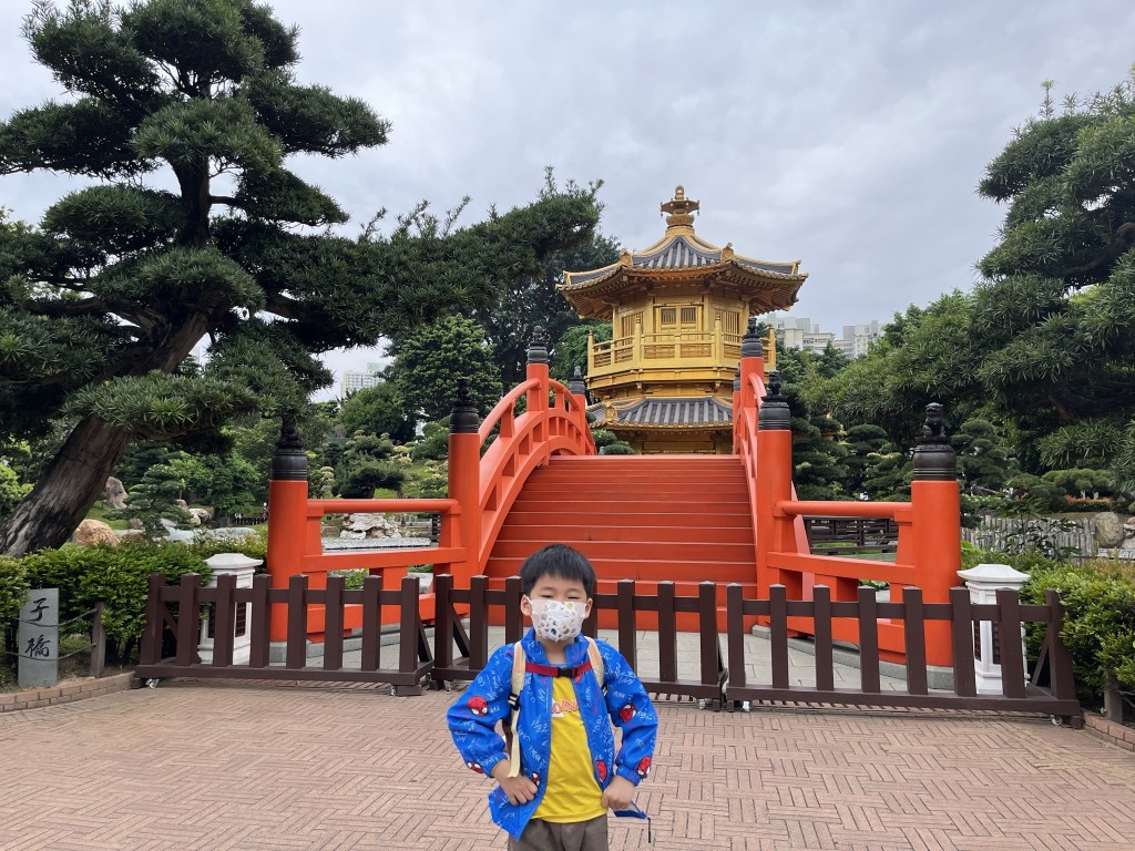 與志蓮淨苑一橋之隔的南蓮園池,園林設計也甚具心思,經過由數棵大榕樹組成的「榕林」後,會看見金光燦爛的「圓滿閣」和丹霞色的「子橋」和「午橋」,感覺恍如到訪日本京都金閣寺。大小朋友如走得累了,更可到園內餐廳「松茶榭」附近休息,餐廳前有一個錦鯉池,哲哲貓在池前觀賞錦鯉,良久不願離開。我們一家並沒有宗教信仰,但疫情之下到兩園參觀後頓時心境平靜,悶氣全消。