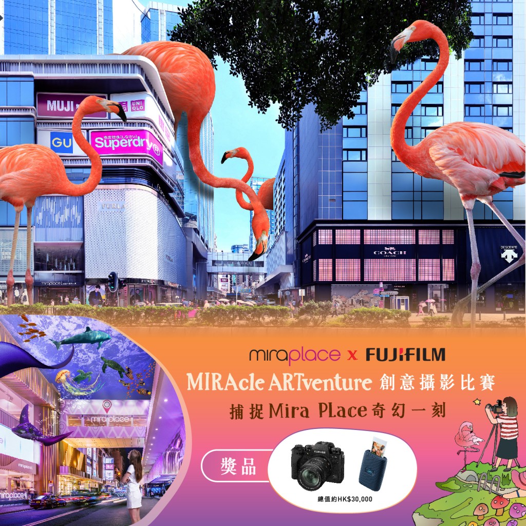 異想主題插畫的多個打卡位成為矚目的幻想空間,超現實的風格描繪出動感一面,讓大家發揮創意、放膽想像,一嘗虛實交錯的另類打卡體驗,於熱鬧的商場與街道捕捉奇幻一刻,分享至潮日常。攝影比賽的得獎作品亦會於網上虛擬展出,讓大家一同展開大冒險。