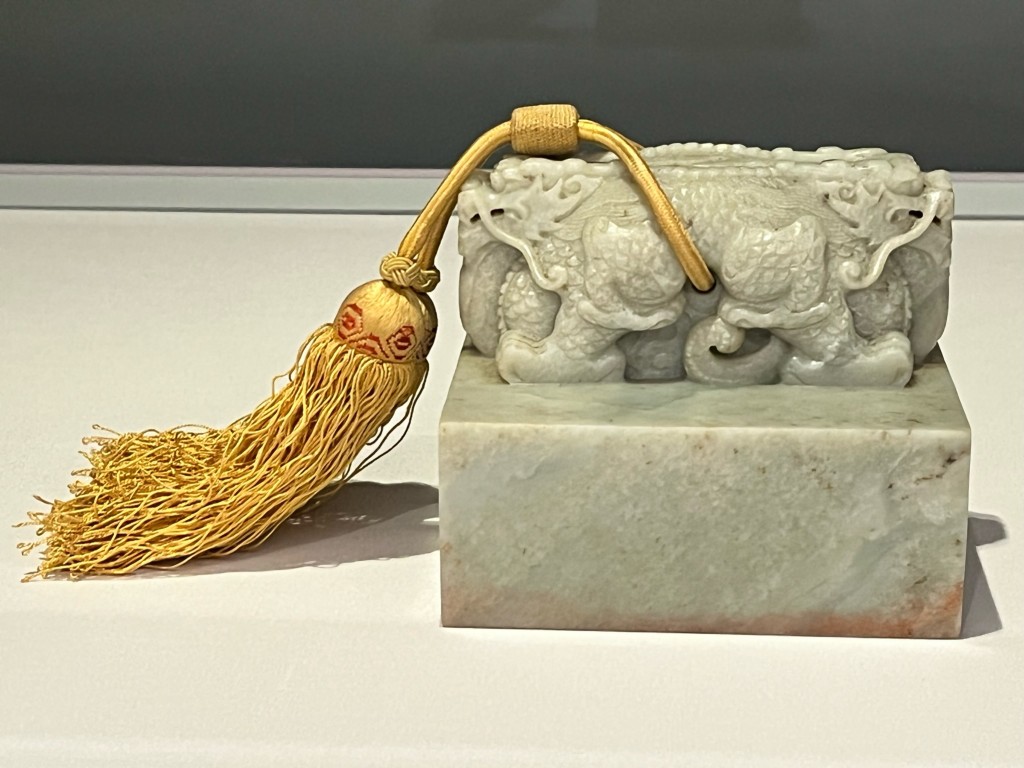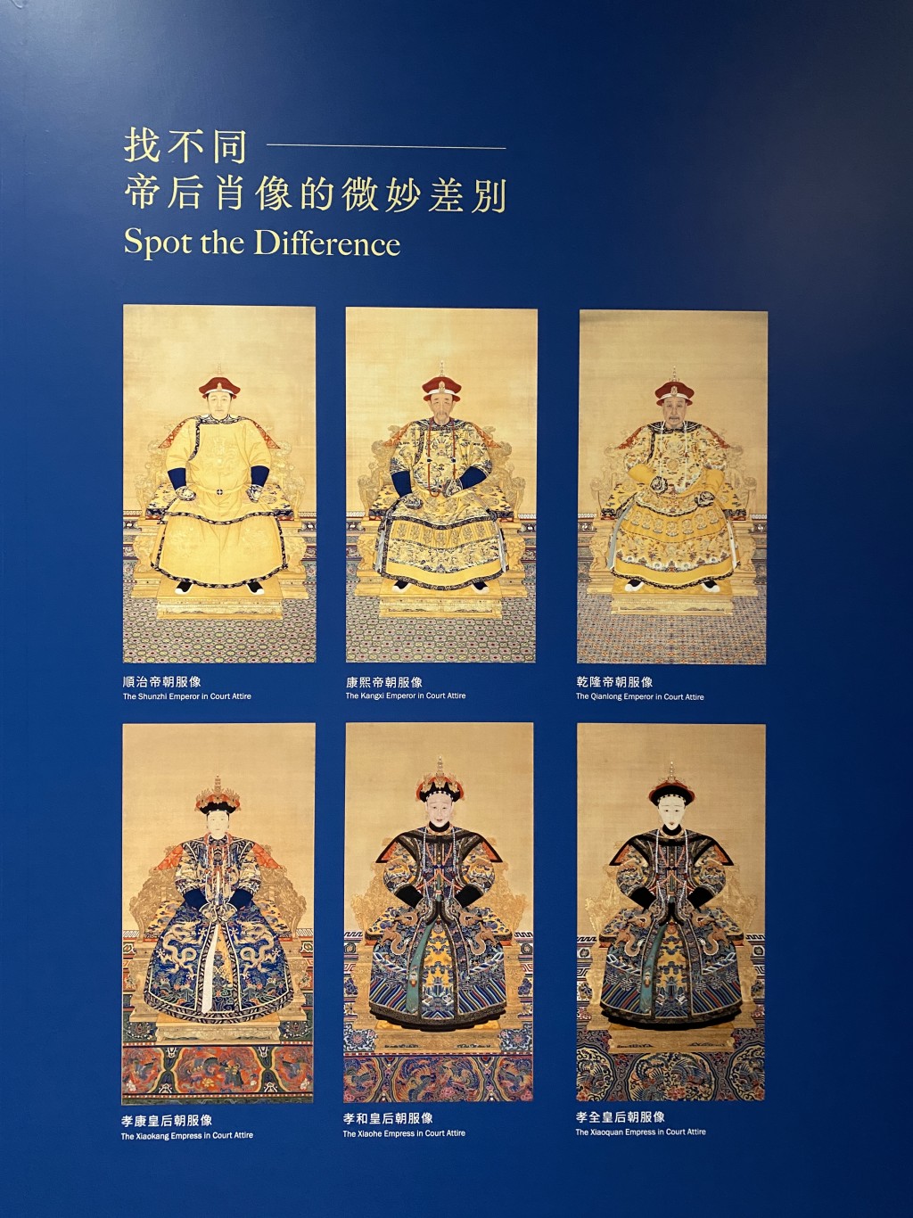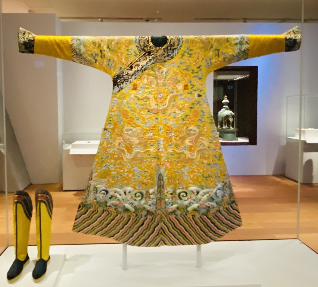 對小朋友而言,四號常設展廳「龍顏鳳姿 —清代帝后肖像」及二號常設展廳「清代宮廷生活」最為吸引,我家兩位古仔於這裏停留最長時間,因為他們可以近距離看到乾隆的龍袍和龍靴,而龍袍上那巧奪天工的繡花,於從前沒有機器的時代也可造出如此手藝,實在令人嘆為觀止!另外,這裏也展出了清代帝后畫像,我們還特地按着愛新覺羅的家族畫像,研究哪位皇帝跟他的父母長得最相像。