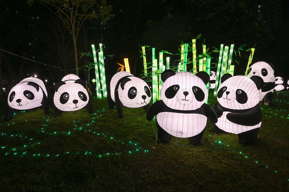 「熊貓出沒注意」!燈展設有五個燈組,營造出「月滿樂遊園」的詩情畫意,而且更有不同姿態的小熊貓綵燈亮相,帶來視覺驚喜,再加上滿園花海,送上歡樂與溫暖。