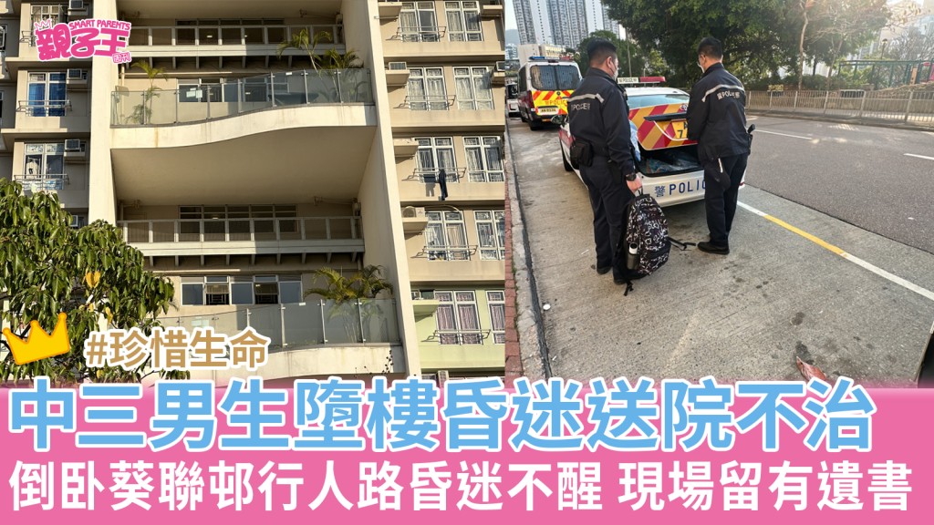 珍惜生命|葵聯邨中三男生墮樓昏迷救後不治 現場留遺書家人慟哭