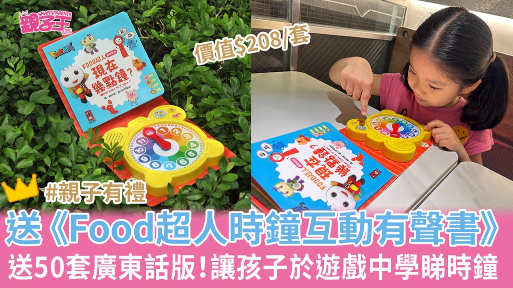 親子王》現送出廣東話版《Food超人時鐘互動有聲書》,名額50套,價值$208。想要請即follow《親子王》facebook及like相關帖文,填妥遊戲參加表格,按facebook帖文遊戲參加表格指示上載,即有機會獲得一套!
