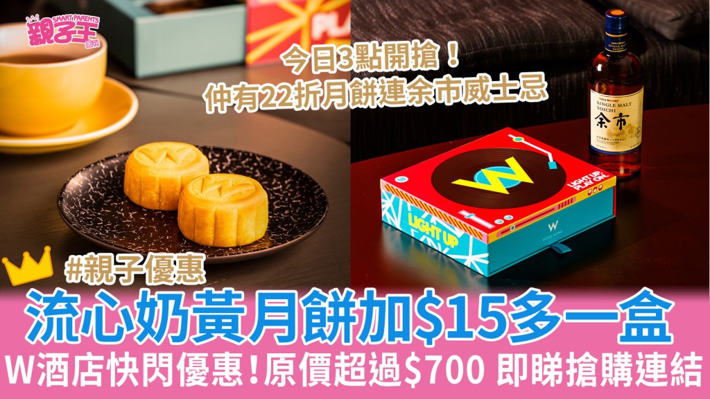 親子優惠︳快閃優惠!W酒店流心奶黃月餅加$15多一盒 原價超過$700 即睇搶購連結