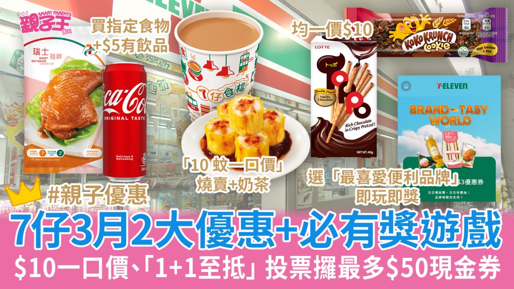 7-11優惠︳7仔激抵$10一口價、「1+1至抵」 投選最喜愛品牌攞最多$50現金券、一定有獎