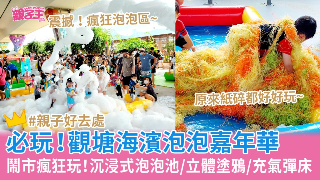 泡泡浴不單小朋友喜歡,就連大人也愛被泡泡包圍!上年曾數度「Encore」的觀塘海濱曾舉辦「MESSY BUBBLE SUMMER 」夏日泡泡嘉年華均大受歡迎,大、小朋友都玩得開心,每次一推出即滿額!今次主辦單位於觀塘海濱舉辦今年首個活動,除了有泡泡池,亦會發放大量泡泡,泡泡隨天飄下,既夢幻又有趣!活動亦設有立體塗鴉區、DIY盆栽區、鬼口水區 、滑水道區、充氣彈床區、瘋狂泡泡區、紙碎池區、鴨仔波波池區及小小水戰區等,透過不同活動啟發小朋友的創造力與想像力,以不同物質刺激小朋友感官發展,讓他們透過遊戲邊玩邊學習,更勇於探索自我潛能。