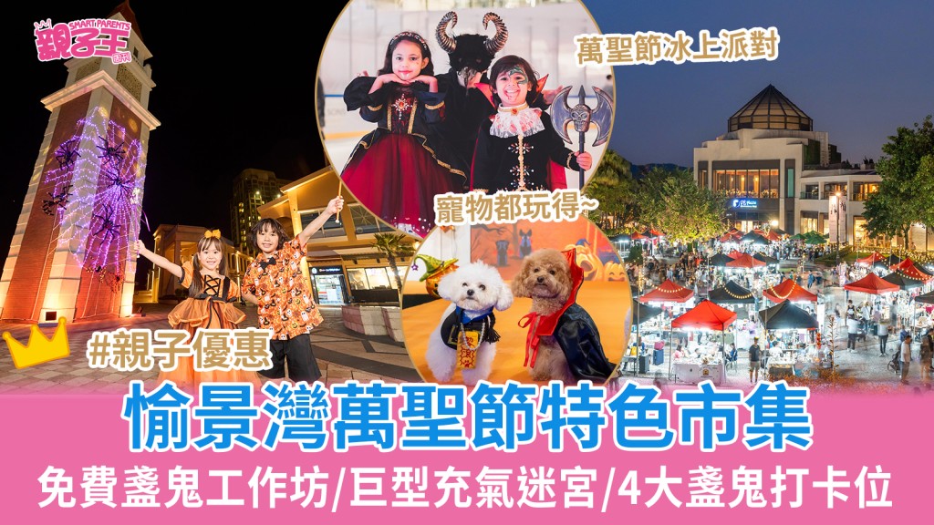 愉景灣為多外籍人士聚居地,充滿異國風情,萬聖節節日氣氛更是濃厚,每年萬聖節總會有大小朋友悉心打扮慶祝。今年愉景廣場及愉景北商場特設「盞鬼」主題燈飾及布置,打造多個詭秘打卡熱點,還會舉辦「嘩鬼大派禮物」活動、萬聖節冰上派對等,一於在這個周末帶同家中「小鬼」出發去這個小島搗蛋。