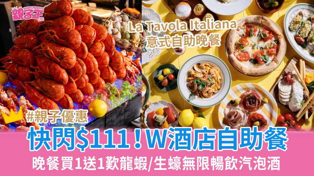 W酒店自助餐低至$111歎麵包蟹/蝦/海螺 自助晚餐買一送一3.5小時任食龍蝦/生蠔︳親子優惠