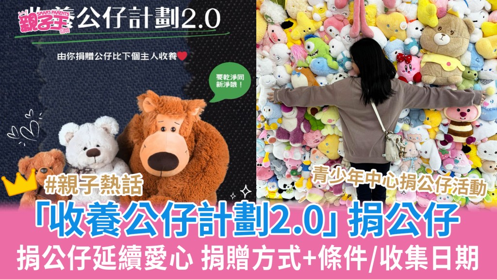 夾公仔︳青少年中心舉辦「收養公仔計劃2.0」捐公仔延續愛心 捐贈方式/收集日期/捐贈條件︳親子熱話
