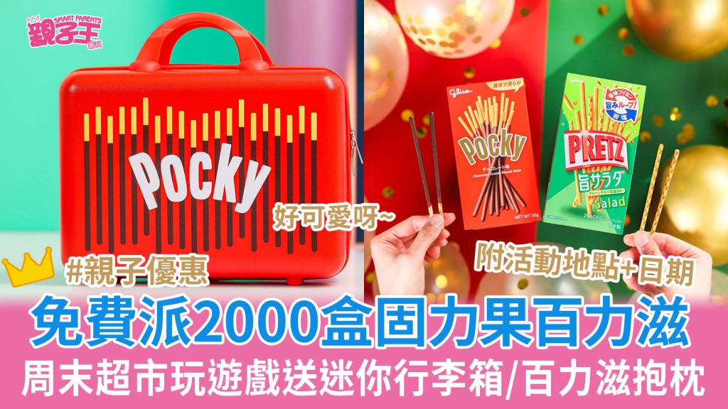 免費派2000盒固力果百力滋 周末超市玩遊戲送Pocky迷你行李箱/百力滋抱枕︳親子優惠