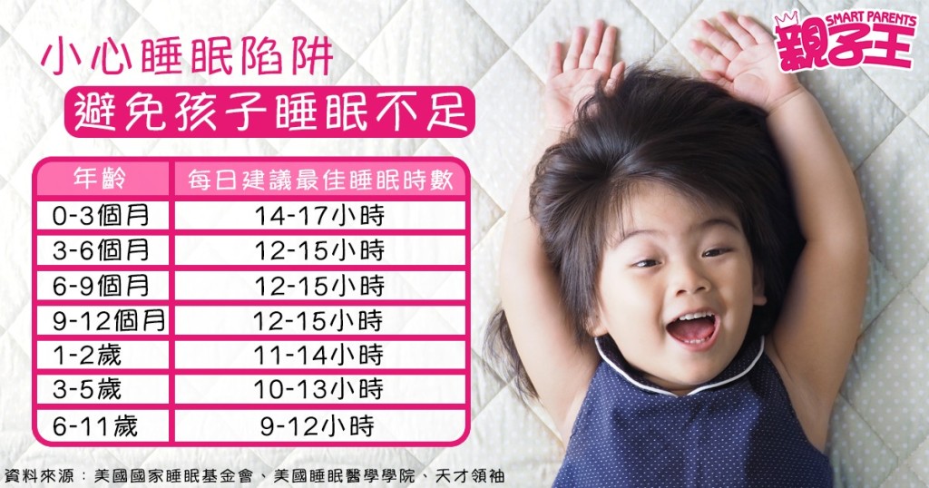 家長必須了解小朋友合適的睡眠長度,以下為小朋友每天建議的最佳睡眠時間,供父母作參考。