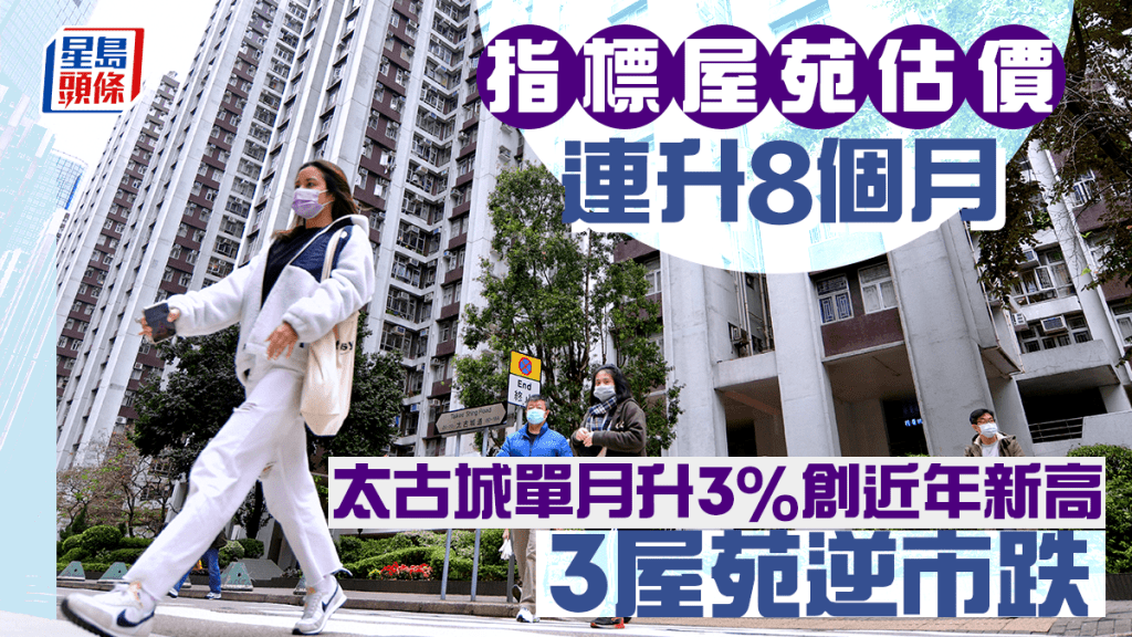 相關文章:指標屋苑估價連升8個月 太古城單月升3%創近年新高 3屋苑逆市下跌