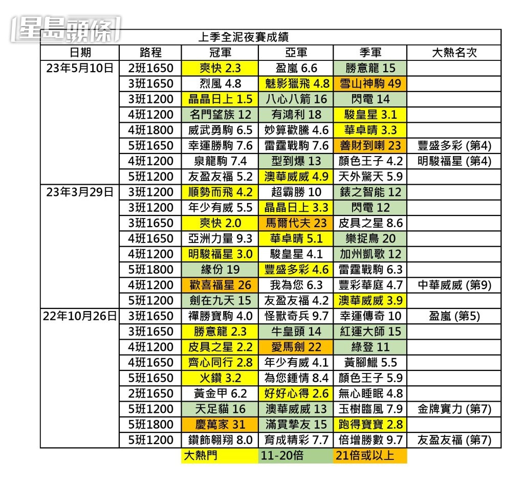 跑馬地及沙田馬場相繼養草,十月尾恆常的泥地夜賽又再舉行,經常有人說泥地夜賽是爆冷溫床,但上季是否如此?
