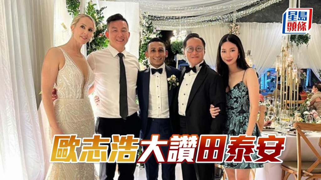 田泰安是出名的「愛妻號」,這方面令歐志浩伉儷甚欣賞。歐志浩說:「田泰安與太太Xaviere可算是圈中模範夫婦,恩愛非常。而我和太太在二○一八年結婚,當時田泰安也在考慮結婚及生育大計,大家便有了共同話題。後來因為疫情,田泰安和Xaviere的婚禮押後了三年才舉行,他們在今年暑假帶同女兒Isabelle回家鄉毛里裘斯度假兼補辦婚禮,我與太太都有出席。」