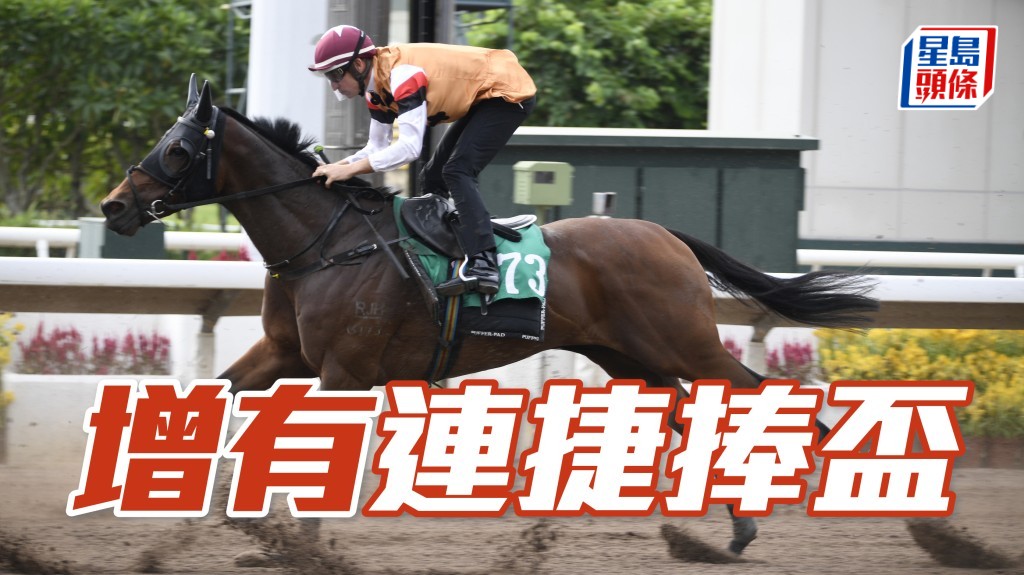 今季「增有」復出首仗即跑二班千四米,在受困遲望空之下,末段一衝即過,而且餘勢極佳。今仗繼續攻千四米,同場三匹一班對手中有兩匹是季內初出,此駒憑著新勝之銳,有力再下一城。