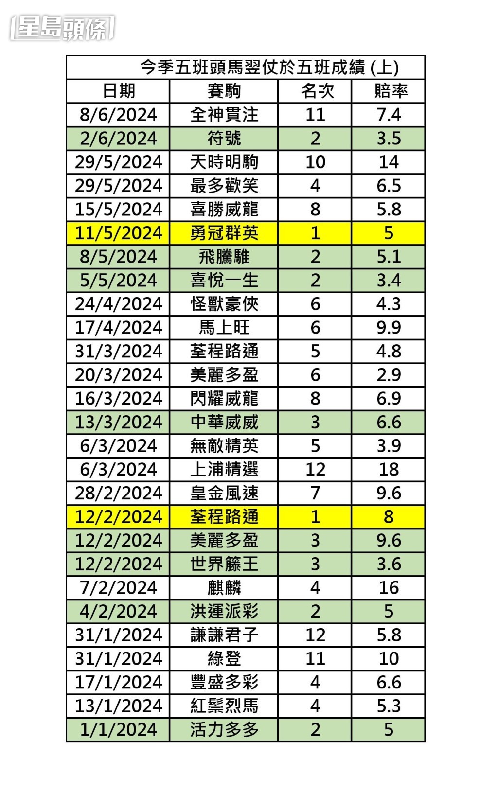 楊駿數據│今季五班頭馬連捷率6%