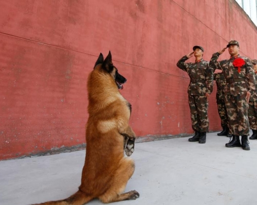 軍犬巡邏遇老兵退伍 「敬禮」送別不願離去