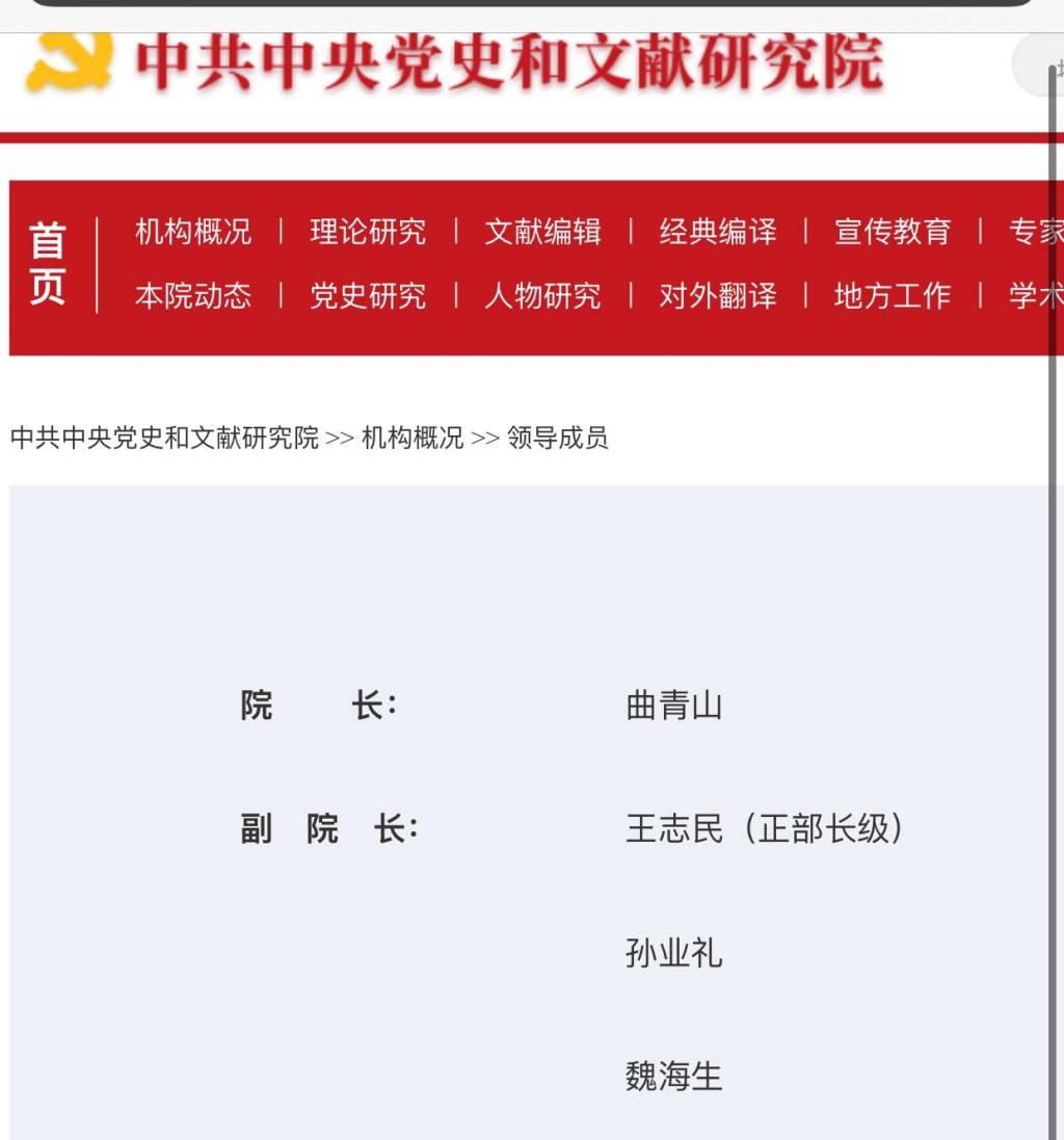 據官網介紹,中央黨史和文獻研究院是黨的歷史和理論研究專門機構,是黨中央直屬事業單位,為正部級。