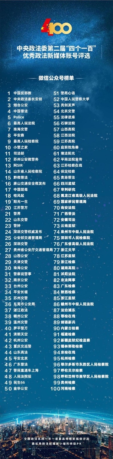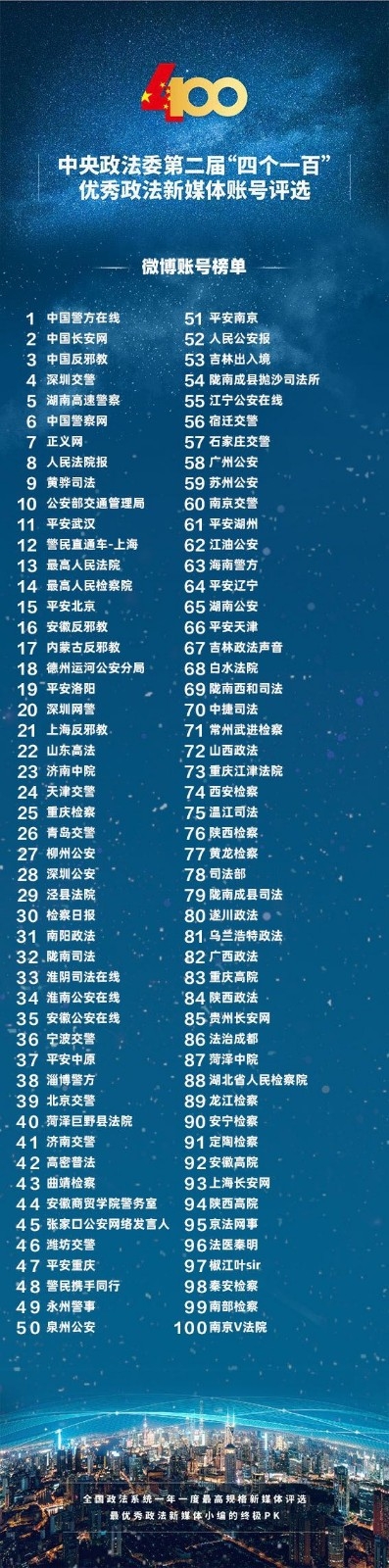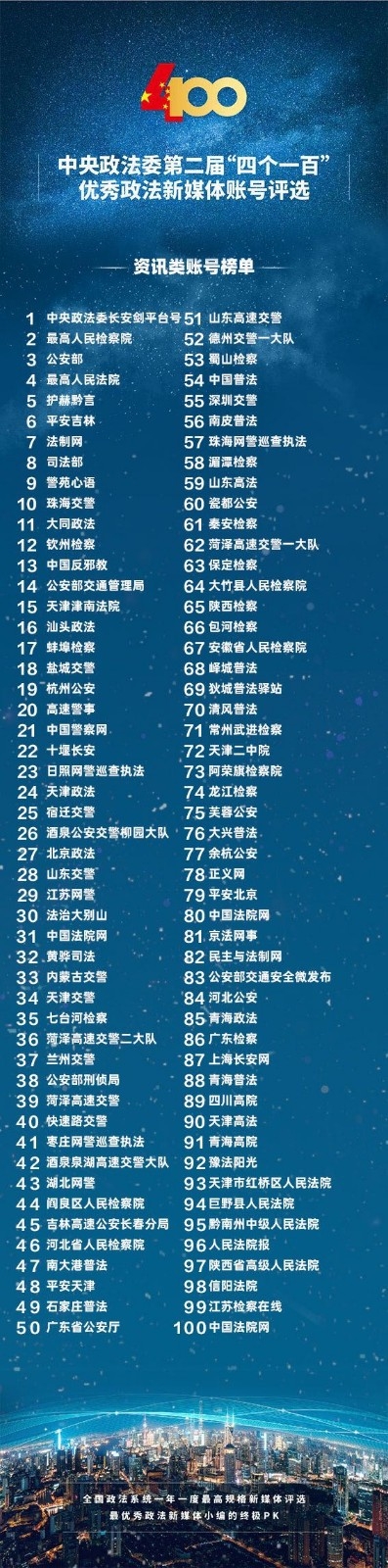 中央政法委發佈「四個一百」優秀政法新媒體排名