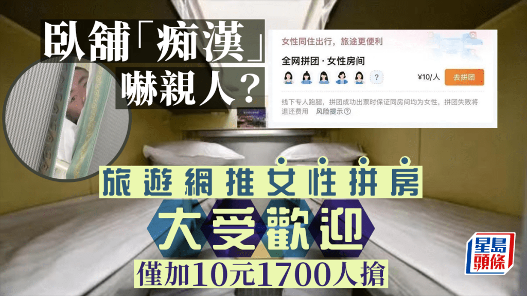 旅遊網推火車臥舖「女性拼房」 付加費僅10元吸引千人下單