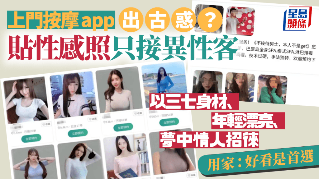 內地上門按摩APP有古惑?「只接異性客」技師貼PS性感照 用家:好看是首選