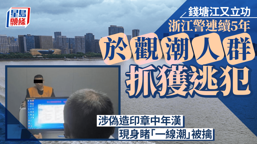 據悉,浙江海寧是觀賞錢塘江「一線潮」的最佳位置,遊客眾多,當地警方已連續5年在遊客中抓獲發現逃犯。
