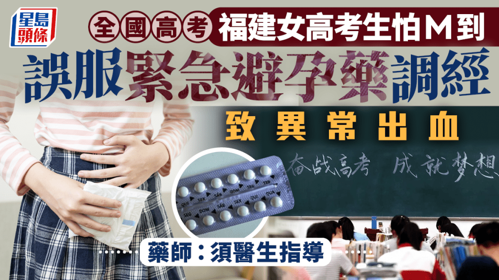 福州高三女生小陳(化名)為避開高考期間「M到」,誤將緊急避孕藥當作調經藥物服用,次日即出現異常出血症狀。專家特別提醒考生及家長:如需調整經期,務必在專業醫師指導下用藥。