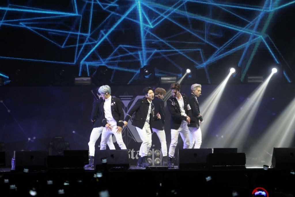 說罷,全場即尖叫歡呼,6子續說:「沒想到我們還未講完,大家的反應已如此熱烈,而之前曾來港參加頒獎禮,令我們有成長的幸福記憶,我們還在港拍過MV呢。有樣嘢不可缺少的,人不可無水,但我們有粉絲就能夠生存,聽到大家的歡呼聲令我們更緊張,但我們的表演不能令大家失望的,會呈現一個很熱烈的舞台給大家欣賞。」提到今次演唱會的主題,他們又分別以韓、英和國語說:「I Love you Baby,我愛你!」唱歌期間又大叫「I Love Hong Kong」,盡施冧功!