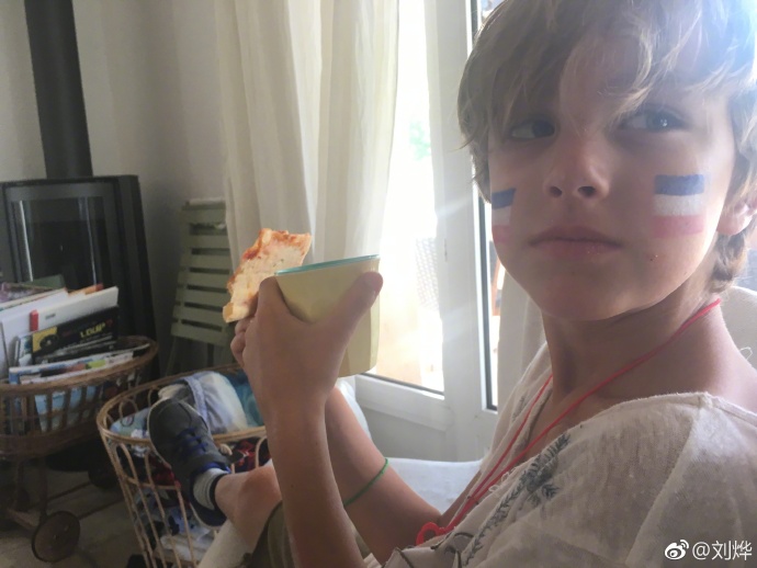 內地男星劉燁娶了個法國妻子,作為法國女婿的他,於昨晚法國與克羅地亞爭奪大力神盃戰役期間,不停在微博更新家裏情況。開場前劉燁留言:「媳婦叫了好些親戚來家裏看球,希望法國能贏吧」,還貼上家裏放置了投射電視睇波,預備了美食等照,老婆和兒子臉上都畫上法國國旗,他的臉則畫紅了一格,網民說是中國國旗。然後是法國隊以烏龍球1:0領先,劉燁貼上家裏的人拍手歡呼照,留言:「吃東西呢,進了,嚇我一跳」。再來下半場時間,法國隊再入兩球,劉燁只留言:「家裏炸了」;到完場他貼自拍照中看到家裏人在手舞足蹈,顯得他更木訥,留言:「贏了,能吃頓開心飯了」。